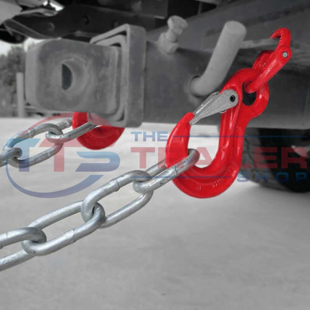 Vehicle Chain Safety Hooks allow for the quick attachment and removal of trailer safety chains from your tow vehicle. No longer is there any need to fiddle with D-shackles when connecting your trailer to your tow vehicle. Austlift 8mm trailer safety chain hooks are CTA approved.